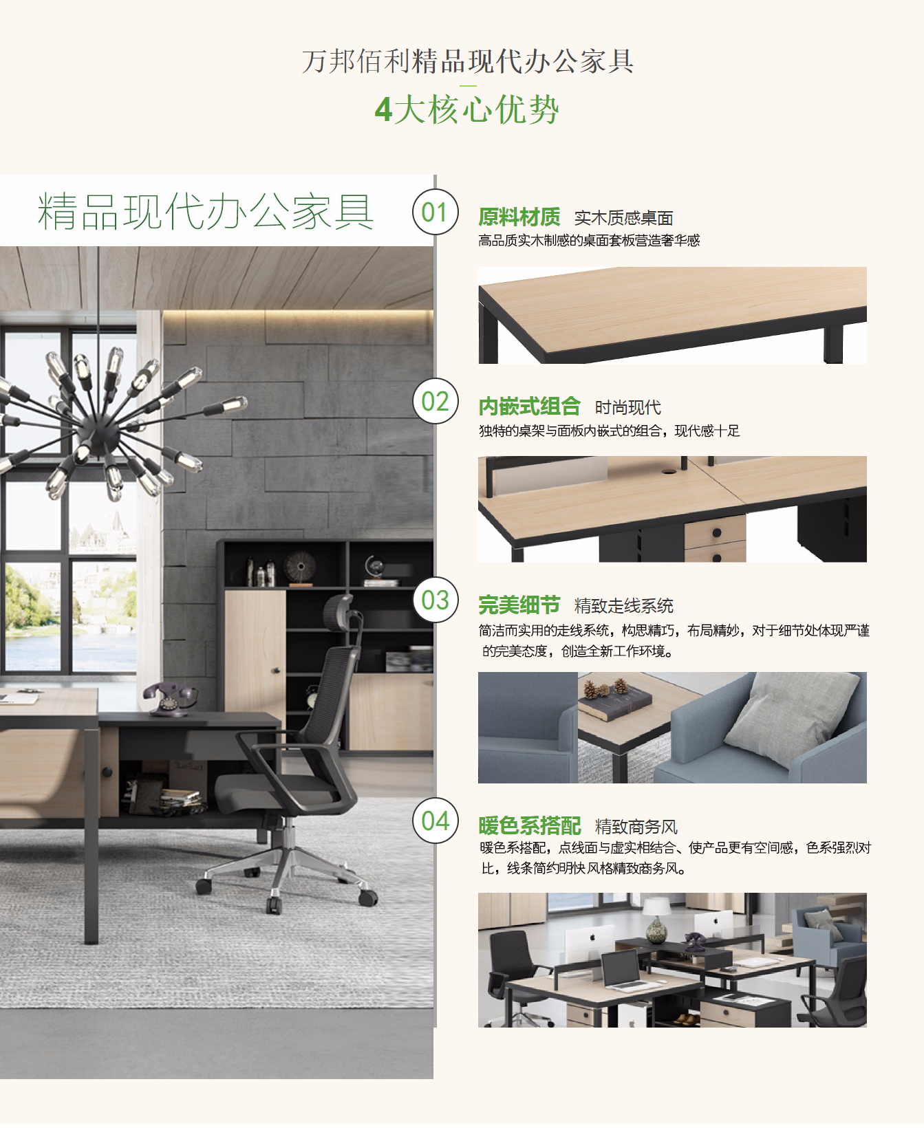 北京萬(wàn)邦佰利家具有限公司是一家專(zhuān)注于辦公家具生產(chǎn)、批發(fā)銷(xiāo)售的公司。銷(xiāo)售的產(chǎn)品有:班臺(tái)、經(jīng)理桌椅、會(huì)議桌椅、員工桌椅、文件柜、密集柜、視屏?xí)h桌、辦公沙發(fā)、學(xué)校家具、銀行家具、戶外家具、醫(yī)院家具等產(chǎn)品,公司自成立以來(lái)始終堅(jiān)持以人才為本、誠(chéng)信立業(yè)的經(jīng)營(yíng)原則,堅(jiān)持用企業(yè)文化提升企業(yè)核心競(jìng)爭(zhēng)力,使企業(yè)在發(fā)展中處于良好的形象.我公司主要服務(wù)于企業(yè)單位的家具定制服務(wù),為各大企業(yè)量身定做整體環(huán)境的家具設(shè)計(jì)全程服務(wù),我們的整體產(chǎn)品服務(wù)...